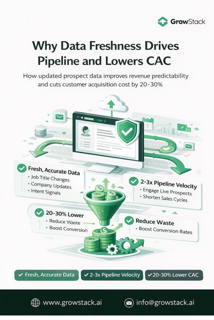Data freshness directly fuels pipeline velocity by enabling personalized outreach that converts at higher rates. Without it, even the best content and messaging falls flat on irrelevant or invalid contacts.